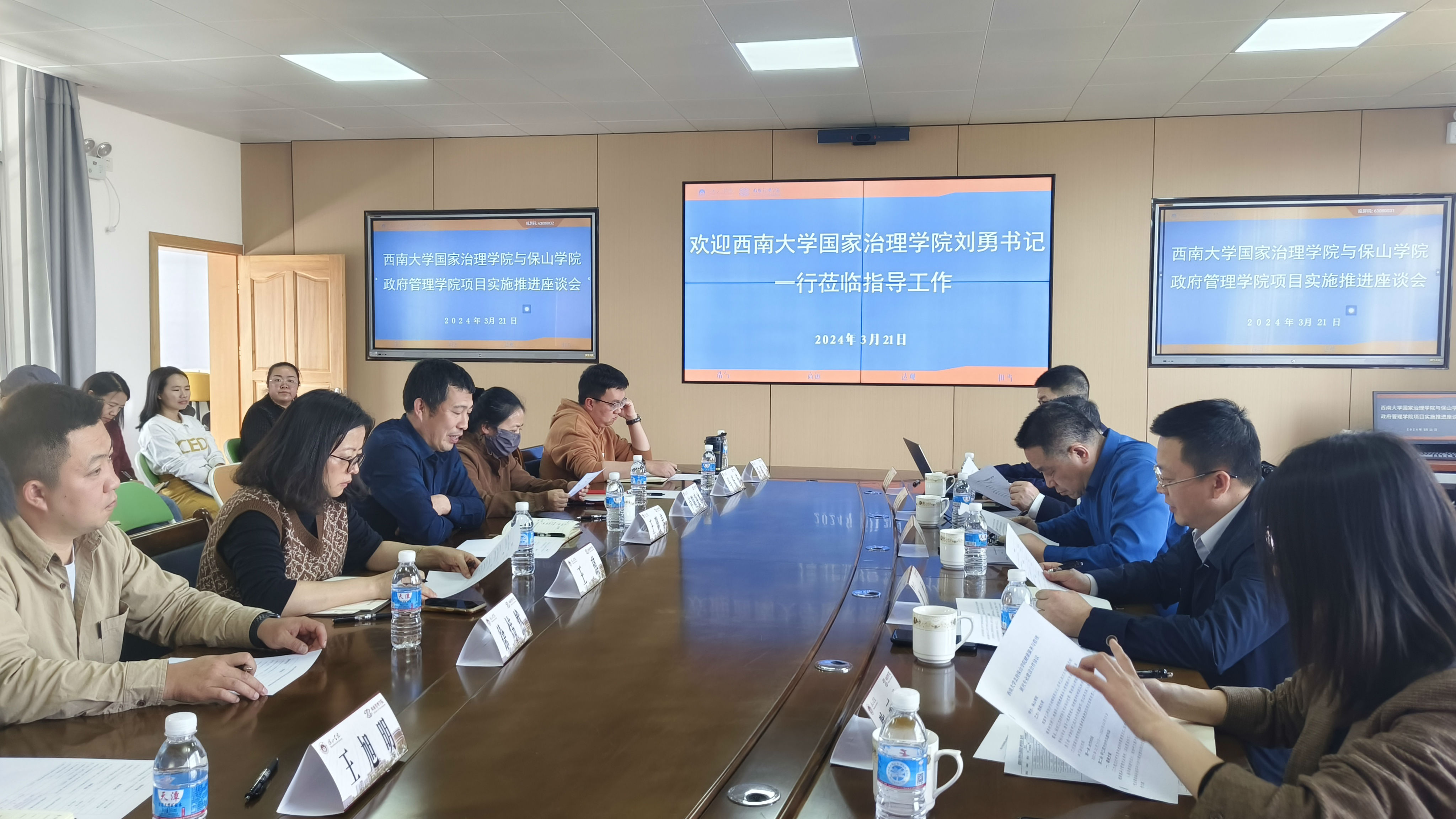 在保山学院,刘勇一行与政府管理学院举行支持健康服务与管理新兴专业建设项目实施推进座谈会。政府管理学院介绍了学院基本情况、当前健康服务与管理新兴专业建设面临的困境。根据保山学院与333体育官网两校合作战略框架协议,双方就新兴学科与专业建设、一流课程建设、教学科研团队和学术成果培育等方面进行了深入交流,进一步明确了在课程建设、团队队伍、教材开发、科研成果等领域开展帮扶合作的工作清单及进度安排。