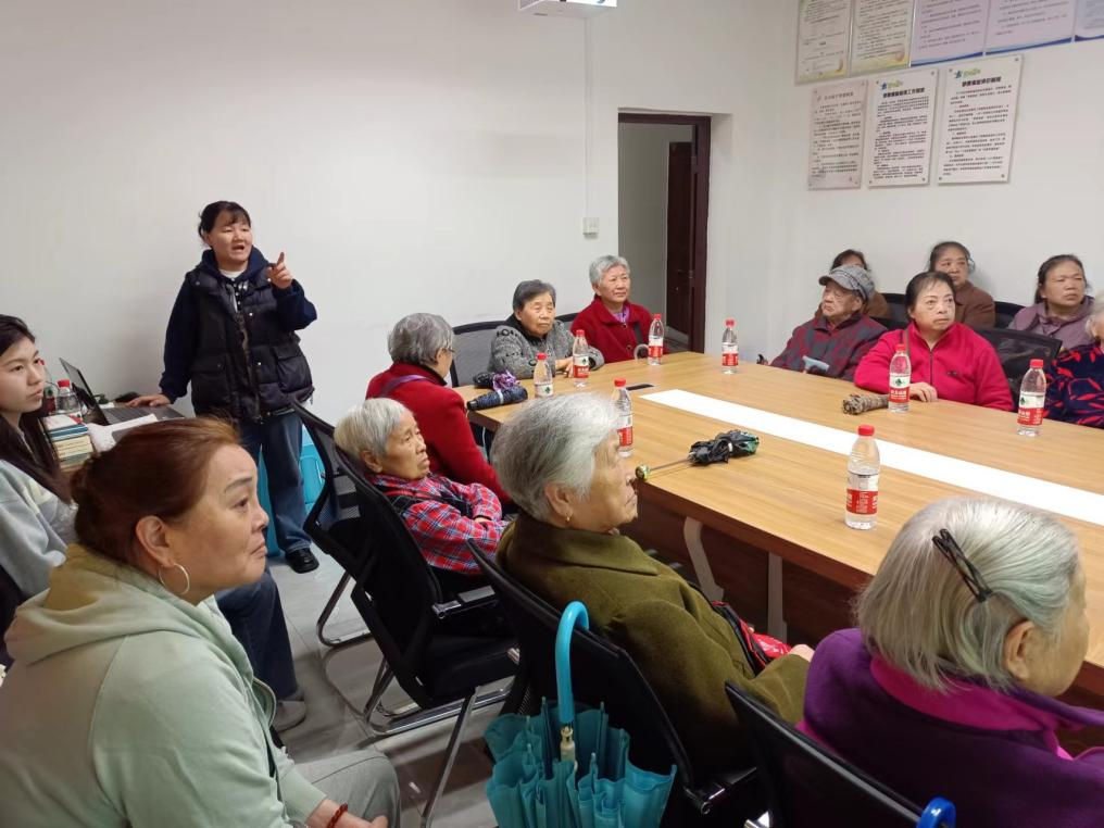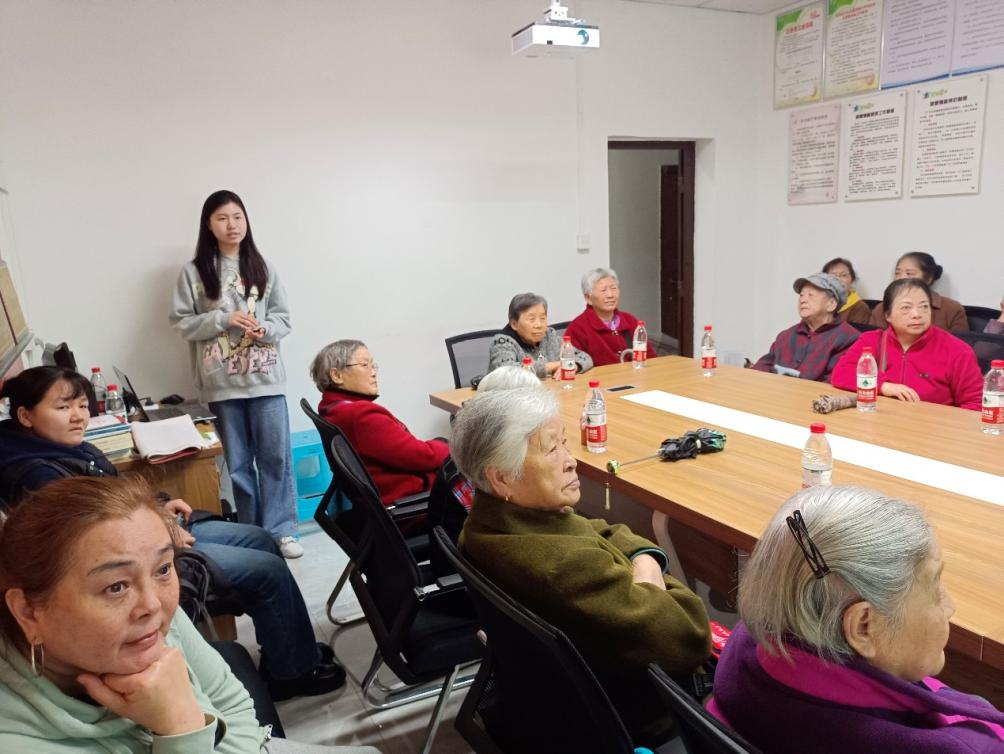 宣讲活动分为防范养老诈骗和智慧养老两个主题。蓝晋羽同志首先介绍了党中央关于打击整治养老诈骗的决策部署,接着结合养老诈骗的现实案例,揭露了当前养老诈骗的常见套路,如“投资理财”“以房养老”“养生保健”“代办社保”“文玩收藏”“婚姻介绍”“低价旅游”等骗局,并提出了有效的防范措施和举报方法,提醒老年人在日常生活中不轻信、不泄露、不转账。以“政策宣讲+生动案例”的形式,有效增强了老年人防诈骗意识,用实际行动守护好老年人的“养老钱”。