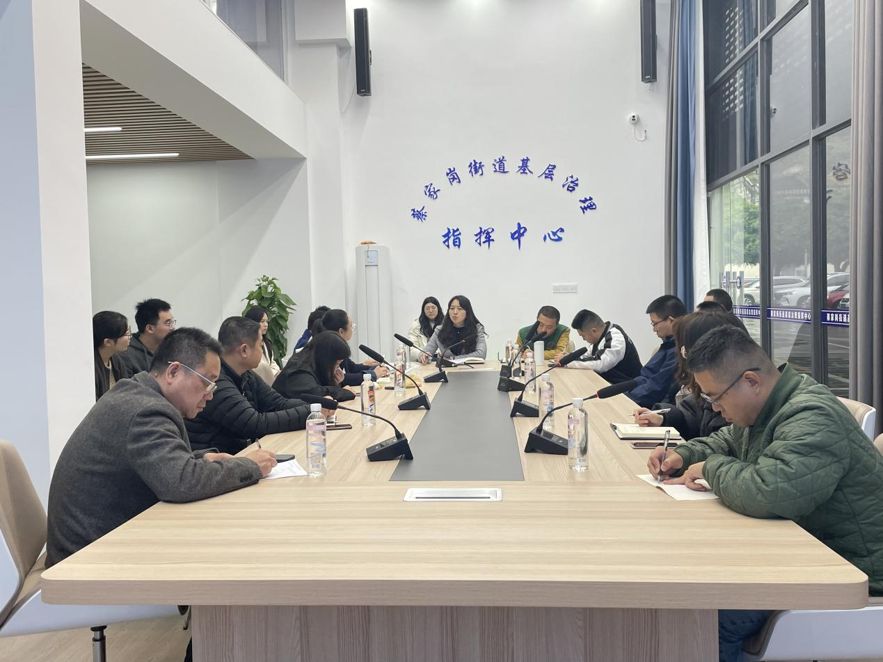 在蔡家岗街道基层治理指挥中心,街道政法委员、党工委委员邓作彬向随访组一行人介绍了“一统五联”机制的由来、发展及成效,党群办主任杨梅对近期“一统五联”相关工作情况进行了梳理。接着,《重庆日报》杨记者就“一统五联”机制的具体内容、案例,对具体的工作人员、居民代表进行采访。