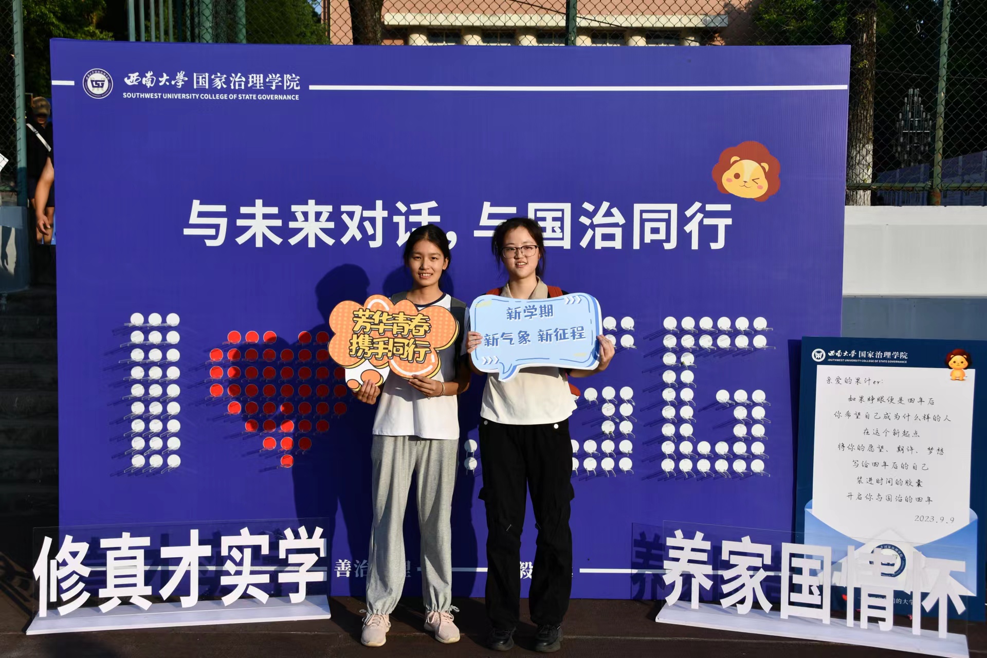 发布时间: 2023-09-12 16:57:42 已阅读:逢九月盛景,寄迎新之情。9月10日至11日,学院迎来了2023级208名本科生,他们带着对老员工活的期待,踏着青春朝阳的步伐,迈入了西大校园,成为一名“西大人”,一名“国治人”。
