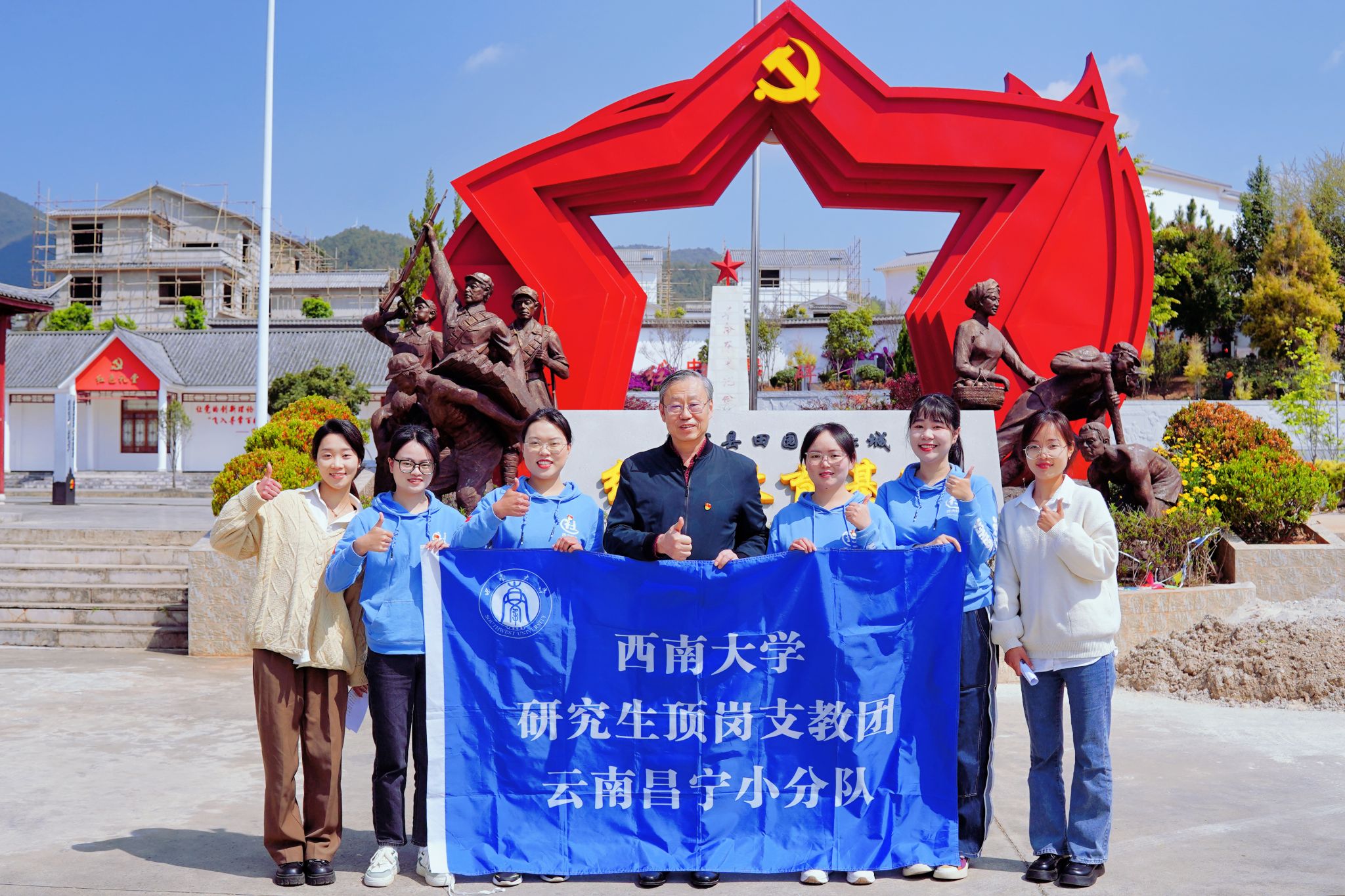 公司驻昌宁定点帮扶志愿者李永雪、王英、黄禹岑、肖鳗四位研究生陪同安书记一行参观了田园镇新城红色教育基地,并在安书记带领下重温入党誓词,砥砺初心使命。在座谈会上,志愿者成员李永雪从调整状态,融入社区,学思结合,服务一老一小,反思实践方向等方面汇报驻社区志愿帮扶工作进展情况;王英同学从自身所见所闻所感出发,表达对昌宁风土人文的热爱,不负热爱的乡土情怀强化了实施乡村振兴的紧迫感使命感和责任感;黄禹岑同学以个人城市生活感受和乡村生活的见闻对比,以童年为主题词讲述儿童之家项目的实施意义就是致力于成为每个孩子身后的微风与阳光;肖鳗同学代表团队成员表态在后期半年的时间扎进乡土,珍惜机遇,贡献青春。