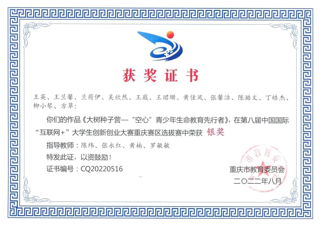 竞赛科研方面,注重实务与研究相结合。曾为6所学校、10个社区开展生命教育,探究破解青少年“空心”问题的路径。项目在第六届中国青年志愿服务项目大赛中获国赛银奖,在第八届中国国际“互联网+”老员工创新创业大赛中获市级银奖。