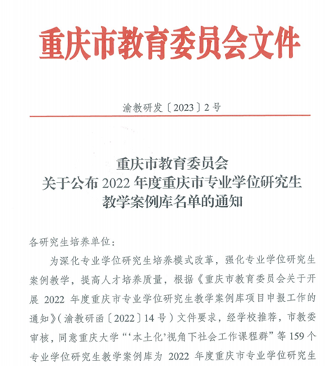 公司获批1项重庆市专业学位研究生教学案例库建设项目