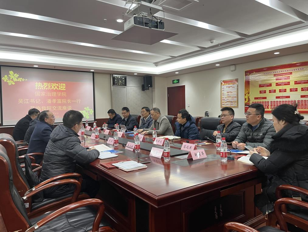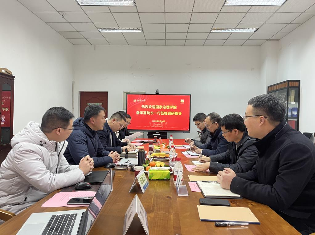 调研走访法学院中,叶金育经理从学院践行有组织科研的探索与成效、制约学院有组织科研开展的主要因素、学院贯彻有组织科研的初步思路、法学学科方向凝练、国家社科基金项目全周期申报工作机制、含弘法学学术工作坊、科研服务机构设置等方面,介绍了学院相关工作具体做法和成效。潘孝富经理相继就学院办学历史、团队建设、人才培养、社会服务、绩效分配方案等方面与法学院领导班子进行交流发言。