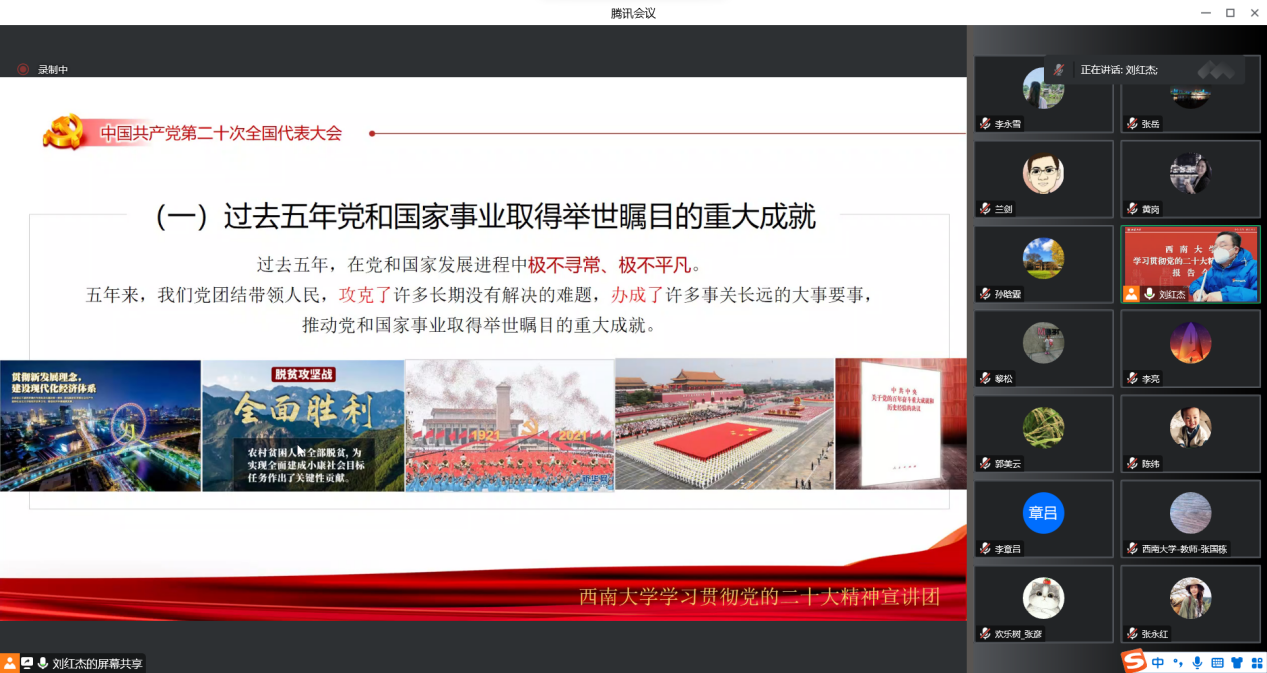 发布时间: 2022-12-27 16:39:26 已阅读:为深入学习贯彻党的二十大精神,根据公司党委统一安排,12月27日上午,333体育官网党委学习贯彻党的二十大精神宣讲团成员、公司党委书记吴江为全体教职工作党的二十大精神宣讲,宣讲会以线上线下相结合的方式举行,全体教职工参加报告会。