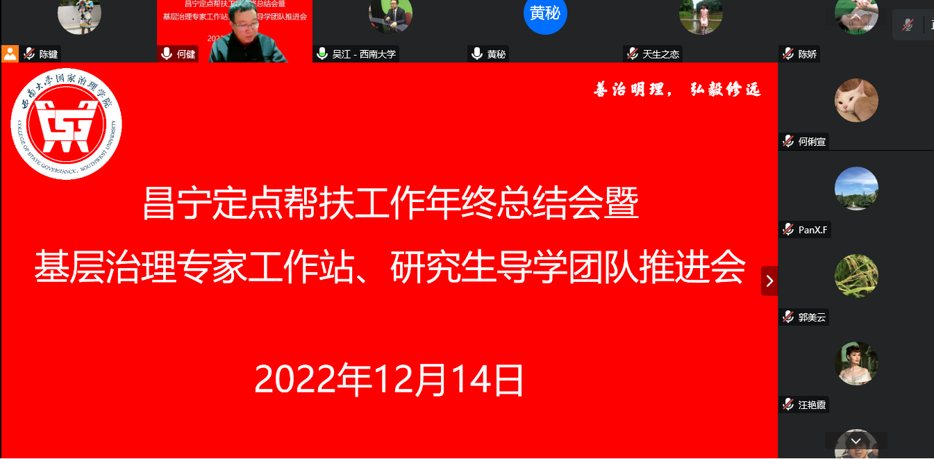 公司召开昌宁定点帮扶年终总结会暨基层治理专家工作站、研究生导学团队推进会