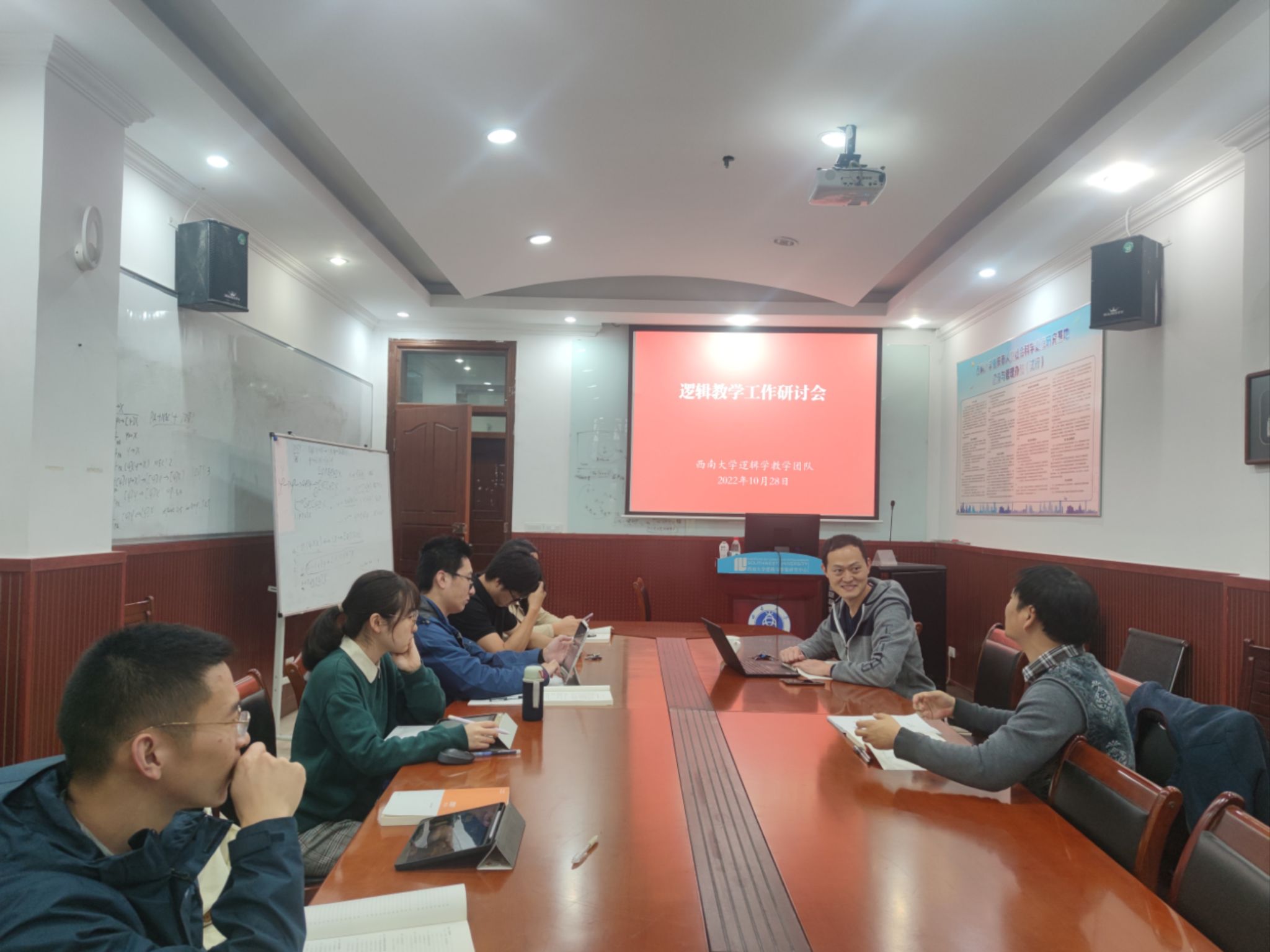 发布时间: 2022-11-07 11:34:58 已阅读:2022年10月28日,为配合推进国家级一流本科专业(哲学)建设工作,333体育官网逻辑学教学团队在3203逻辑与智能研究中心会议室召开了“逻辑教学工作研讨会”。教学团队成员郭美云教授、李章吕教授、熊作军副教授、蒋军利博士、孙洋博士,以及员工代表郭希、郑怡、肖方等参会。会议由逻辑学教研室主任李章吕主持,就逻辑教学与研究、重庆市教学创新大赛准备工作和“马工程”教材《逻辑学》修订工作等事宜进行了研究和部署。