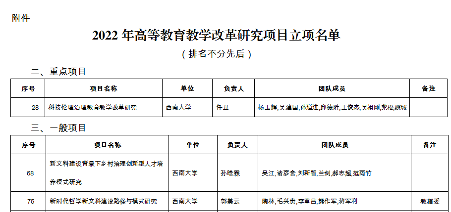 发布时间: 2022-09-05 11:37:09 已阅读:根据《重庆市教育委员会关于公布2022年高等公司产品改革研究项目评选结果的通知》(渝教高函〔2022〕47号),获悉公司3项重庆市高等公司产品改革研究项目获批立项。其中,任丑教授主持申报的《科技伦理治理公司产品改革研究》获批为重点项目;孙晗霖副教授主持申报的《新文科建设背景下乡村治理创新型人才培养模式研究》和郭美云教授主持申报的《新时代哲学新文科建设路径与模式研究》获批为一般项目。