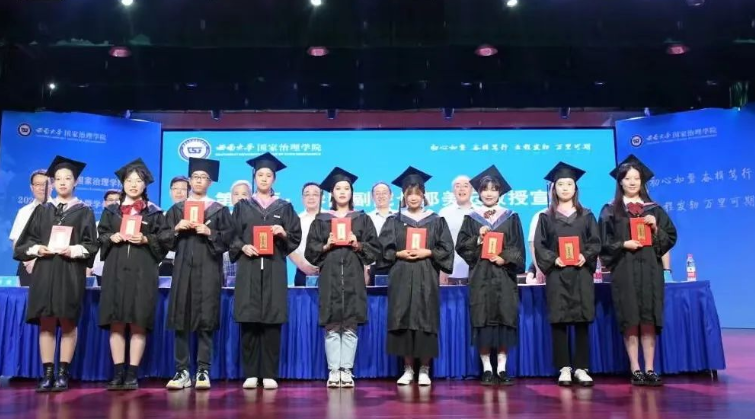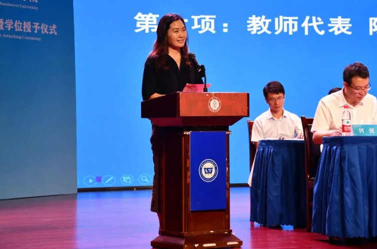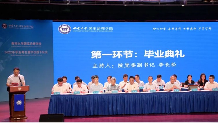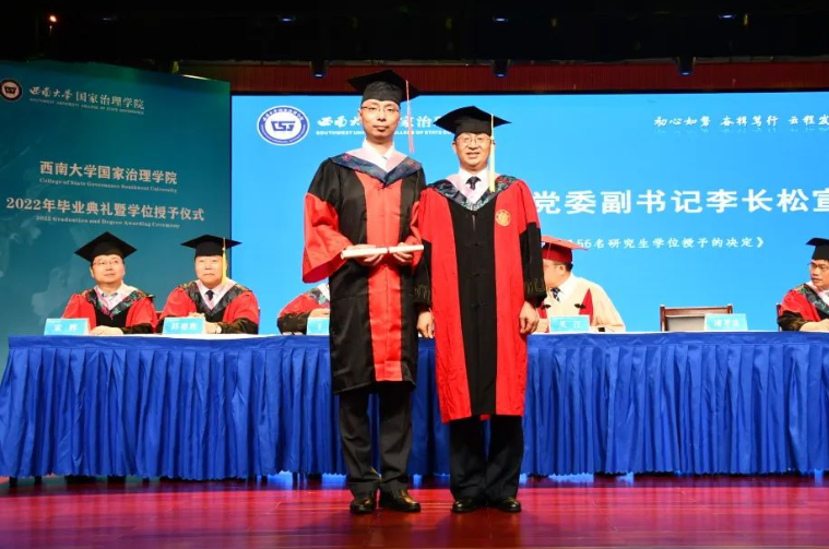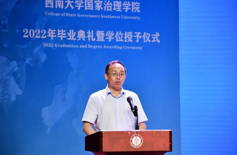 毕业研究生代表2019级科学社会主义与国际共产主义运动专业硕士研究生杨港在发言中表示,国治院的烙印会永远留在每个同学的心中,西大的精神会在同学们的身上重生,呼吁全体毕业生在未来的旅程里不畏艰险,追求卓越。