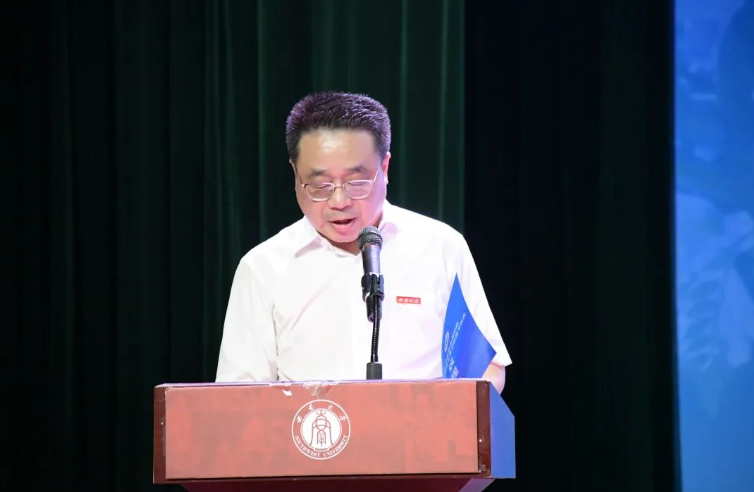经理潘孝富致辞,代表学院全体教职员工向学院310名本科毕业生,156名硕士研究生毕业生和4名博士研究生毕业生,表示最热烈的祝贺和最诚挚的祝福,并寄语学院2022年全体毕业生:一是坚持做思考者,用理性光芒照亮生活;二是坚持做管理者,用内在秩序充实生活;三是坚持做共情者,用情感价值温暖生活。善用专业底色,让青春在拼搏奋斗中闪闪发光,描绘更加丰富多彩的人生画卷。
