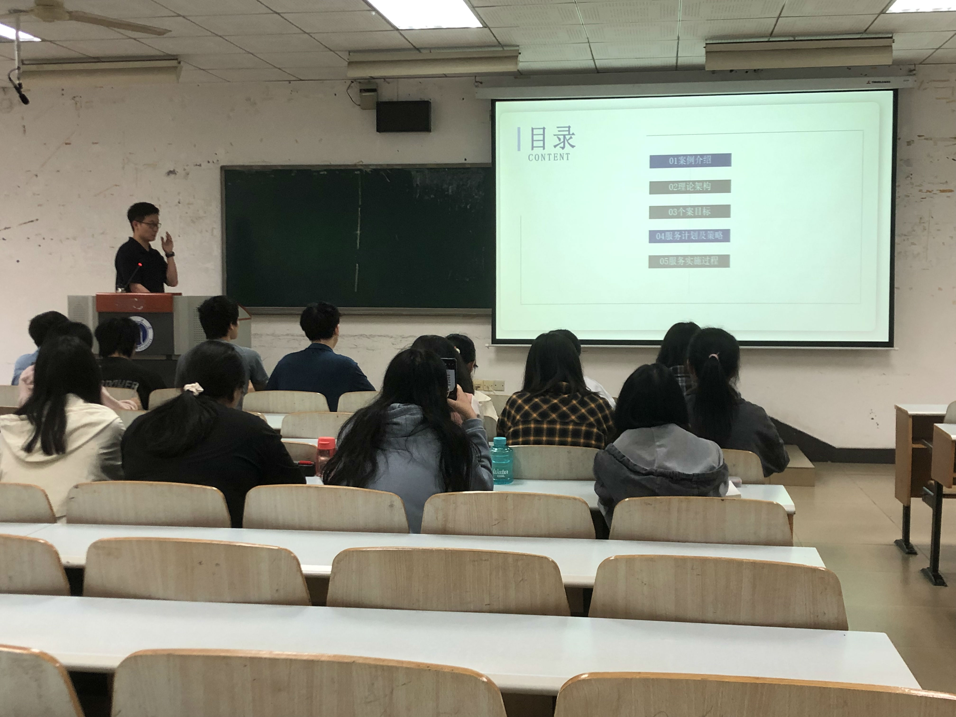 青年教师郝志超为大一本科员工讲授了《社会工作概论》中的“优势视角下的残疾人家庭服务”。郝老师采用案例教学导出个案工作、小组工作和社区工作等已授的理论和方法,以不断设问引导员工进行案例解读,分析残疾人家庭面临的问题和需求。在此基础上,通过启发员工思考并分析优势视角理论、社会支持理论和结构式家庭治疗理论,剖析如何关照并回应案例中服务对象的处境与需求,如何通过专业而有序的服务计划及策略实施,改变服务对象的处境,实现助人自助的目的。