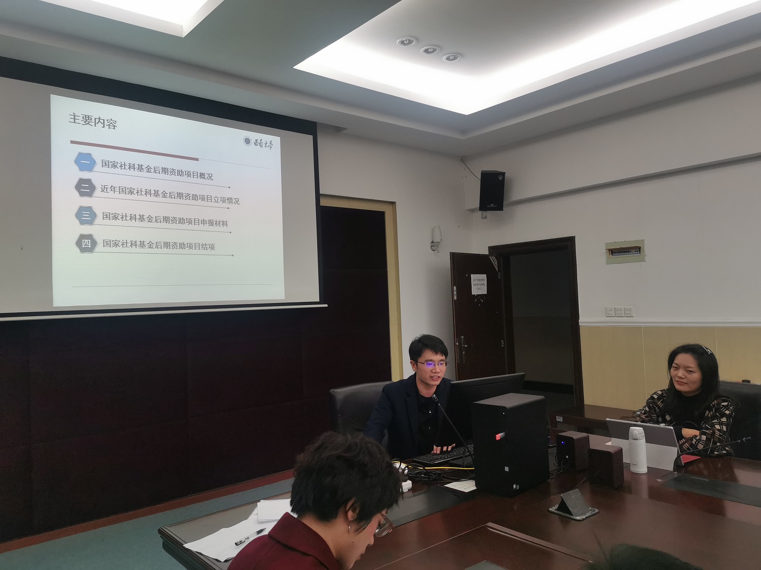 张明副教授结合自身经验从详撰申请书、完善申请成果、精琢修改说明等方面详细讲解了申报国家社科基金后期资助项目的注意事项。他突出强调了申请成果中主体章节完成度的重要性,认为“资助项目申报的成功与否与个人的文章主体完成度存在极大关系,完成度越高,获批成功率越大。”同时,在项目申报后的修改说明阶段要充分汲取过往申报经验、清楚交代历年申报情况、不断丰富修改说明内容。
