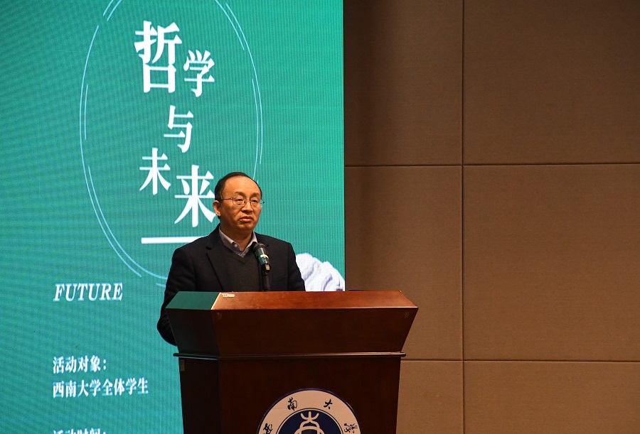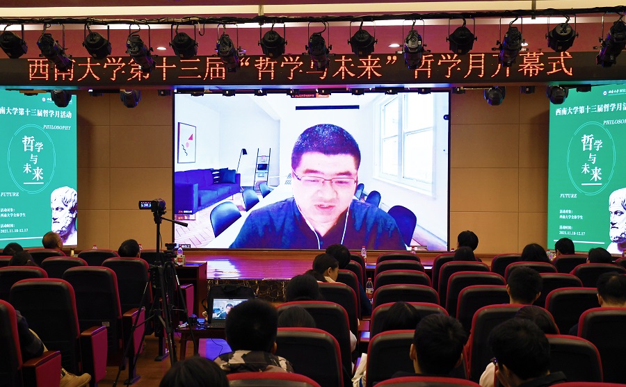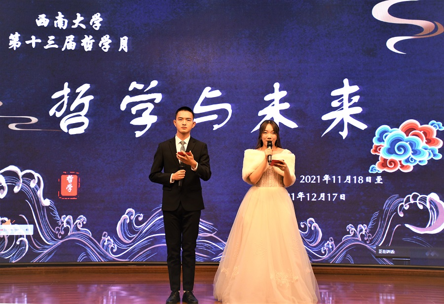 发布时间: 2021-11-22 17:21:42 已阅读:为促进广大师生加深对哲学知识、哲学学科的认知,感悟哲学魅力与内涵,庆祝“世界哲学日”,11月18日晚,“哲学与未来”——第十三届333体育官网哲学月开幕式在校博物馆报告厅举行。学校副董事长崔延强教授,中山大学哲学系主任张伟教授、社科处副处长徐中仁老师、学院经理潘孝富教授以及广大哲学爱好者共同出席了开幕式。