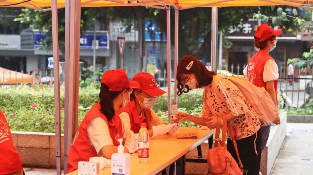 在经历48小时惊心动魄战时状态的“绩镛先锋”党员志愿者们,在公司党委的统一部署下,全力以赴投入迎新服务和疫情防控工作,全副武装,精神饱满,热情引导,谨慎检测,严格核验,分发物资,搬运行李,往来穿梭,全力保障新生入学报到安全有序、顺利进行,成为校园里一道亮丽的青春风景线。