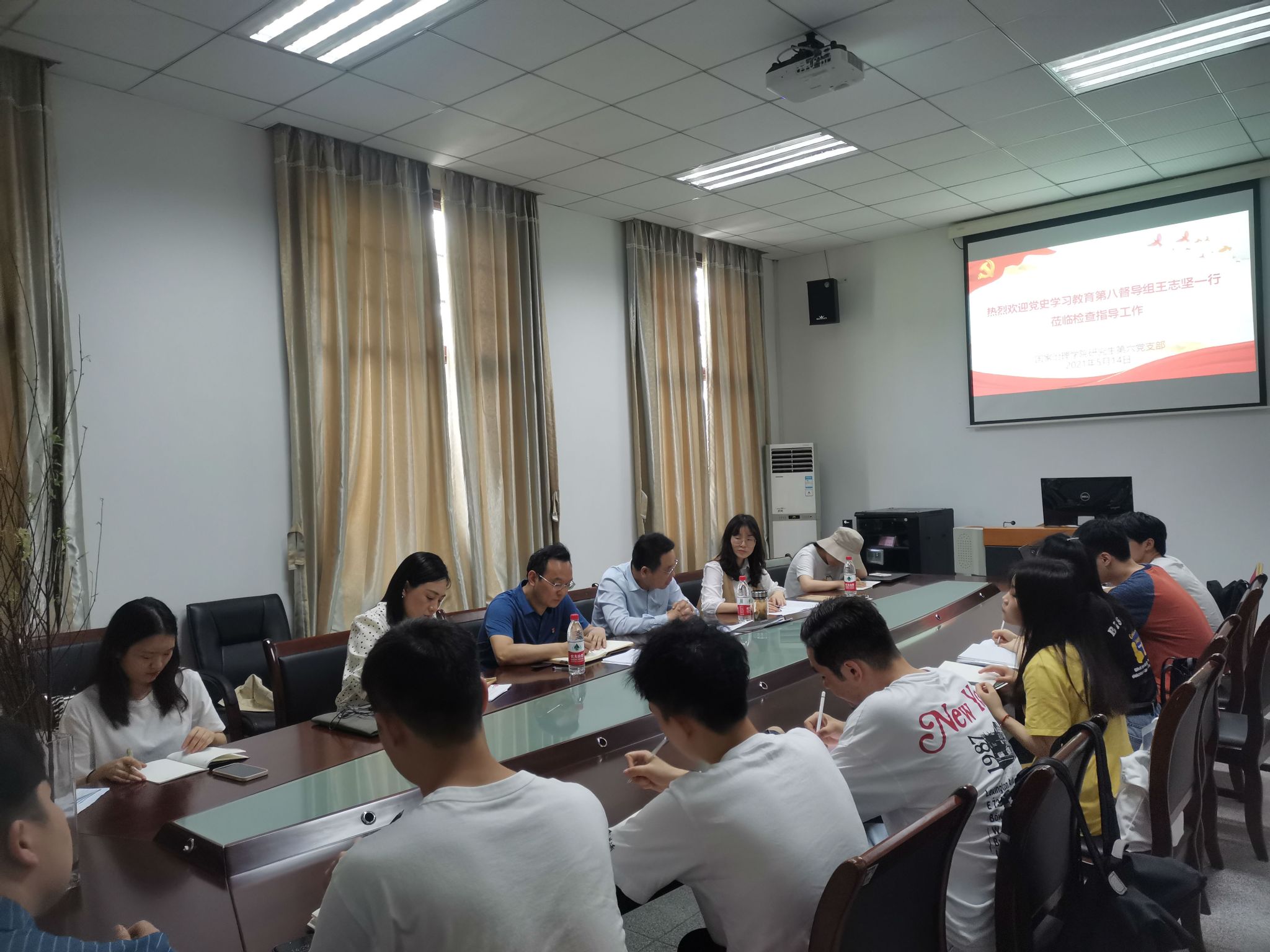 发布时间: 2021-05-23 15:51:17 已阅读:按照学校部署,5月14日下午14:00时,公司党史学习教育第八督导组组长王志坚一行来院督导检查指导党史学习教育,并参加研究生第六党支部组织生活会。公司党委书记吴江参加了本次生活会,会议由研究生第六党支部书记申丽娟主持。
