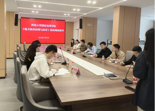 发布时间: 2024-05-15 11:42:23 已阅读:为创新课程形式,增强同学们的参与感与获得感,2024年5月6日上午,学院2023级行政管理专业9名研究生在吴江教授带领下赴天生街道开展《地方政府治理与改革》课程的现场教学活动。天生街道党工委委员、组织委员艾杨婷,天生街道党建综合岗负责人刘莉等6名工作人员参与本次活动。