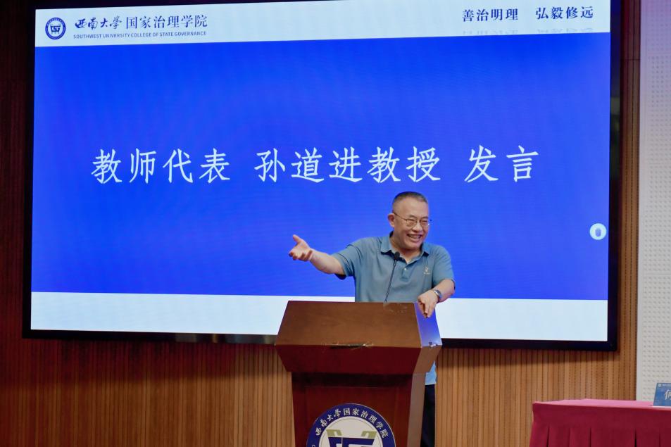 公司党委书记刘勇讲话。刘勇书记代表全院教职工向全体新生表示最诚挚的欢迎。他与同学们共同探寻为学之道,提出要以修身为本,扬人性之善;以家国为先,担天下之任;以创新为要,追真理之光。他嘱咐同学们要牢记“善治明理,弘毅修远”的院训,弘扬“修真才实学,养家国情怀”的学院精神,以梦为马,不负韶华,用拼搏进取的昂扬姿态擦亮青春最亮丽的底色,在最好的年纪成就最好的自己。