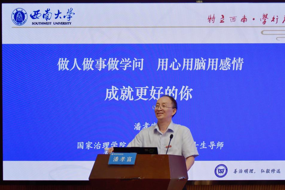新生见面会之后,学院经理潘孝富教授以“做人做事做学问 用心用脑用感情 成就更好的你”为主题,开启了新生入学教育第一课。潘经理从“我们的大家庭”、“我对大学的粗浅解读”和“我心中的大学学习与生活”三个方面出发,向同学们介绍了他眼中的333体育以及老员工活。潘经理提出,学习要悟道明理、慎思笃行;做人要有同理之心、慈悯之情、合作之道、分享之悦、家国情怀;做事要用心、用脑、用情、负责;做学问要博学之、审问之、慎思之、明辨之、笃行之。并在现场为同学们进行疑难解答,为同学们的学习生活指明了方向。