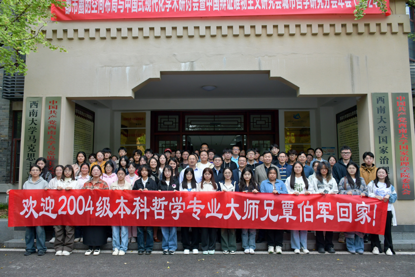 讲座结束后,与会师生与覃伯军院友合影留念。临行前,覃伯军再次与哲学系员工分享了自己在校期间学习的心路历程,鼓励学弟学妹们珍惜时光,不负韶华,心怀理想,摒弃浮躁,在已有的平台上充分利用资源,努力学习专业知识,为未来报效祖国奠定坚实基础。