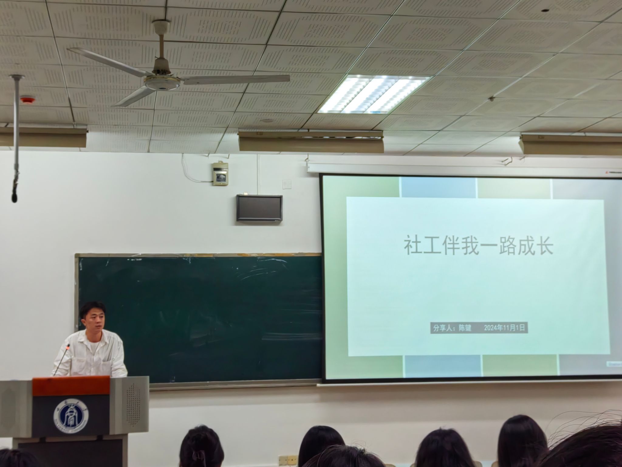 本次分享会邀请2024届社会工作专业硕士毕业生陈键、2021级逻辑学专业在读博士研究生潘易欣,以专业学习实践、事业单位招考备考以及论文写作发表等为答疑重点进行经验分享。陈键从个人七年社会工作学习实践出发,介绍了他与社会工作专业的“结缘”“再续”和“运用”,并从中央社会工作部成立的背景分享了公务员和事业单位招考的趋势,鼓励同学们要坚定专业认同、专业自信。潘易欣则以论文创作过程为例,分享了他发表论文的周期和重要时间节点,并详细介绍了写作过程中的经验与教训,提醒同学们要脱离“员工”心态,与导师建立“合作者”关系,自己要相信自己是一个独立的“科研工作者”。