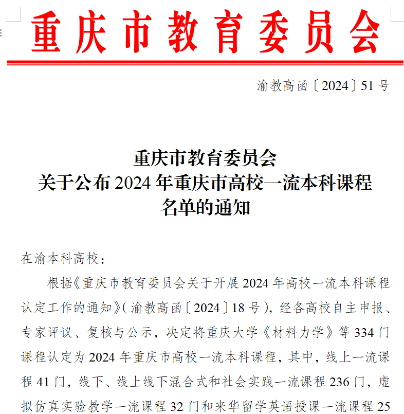 公司1门课程获重庆市高校一流本科课程