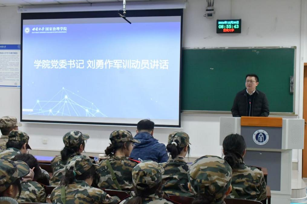 傲雪凌霜,冬日可爱。12月30日上午,学院2024级本科生军训动员大会在28教301会议厅举行。公司党委书记刘勇、党委副书记李长松、一团一营二连曹海川教官、余文龙教官、2024级辅导员肖颜以及全体参训员工参加了本次动员大会。大会由肖颜主持。