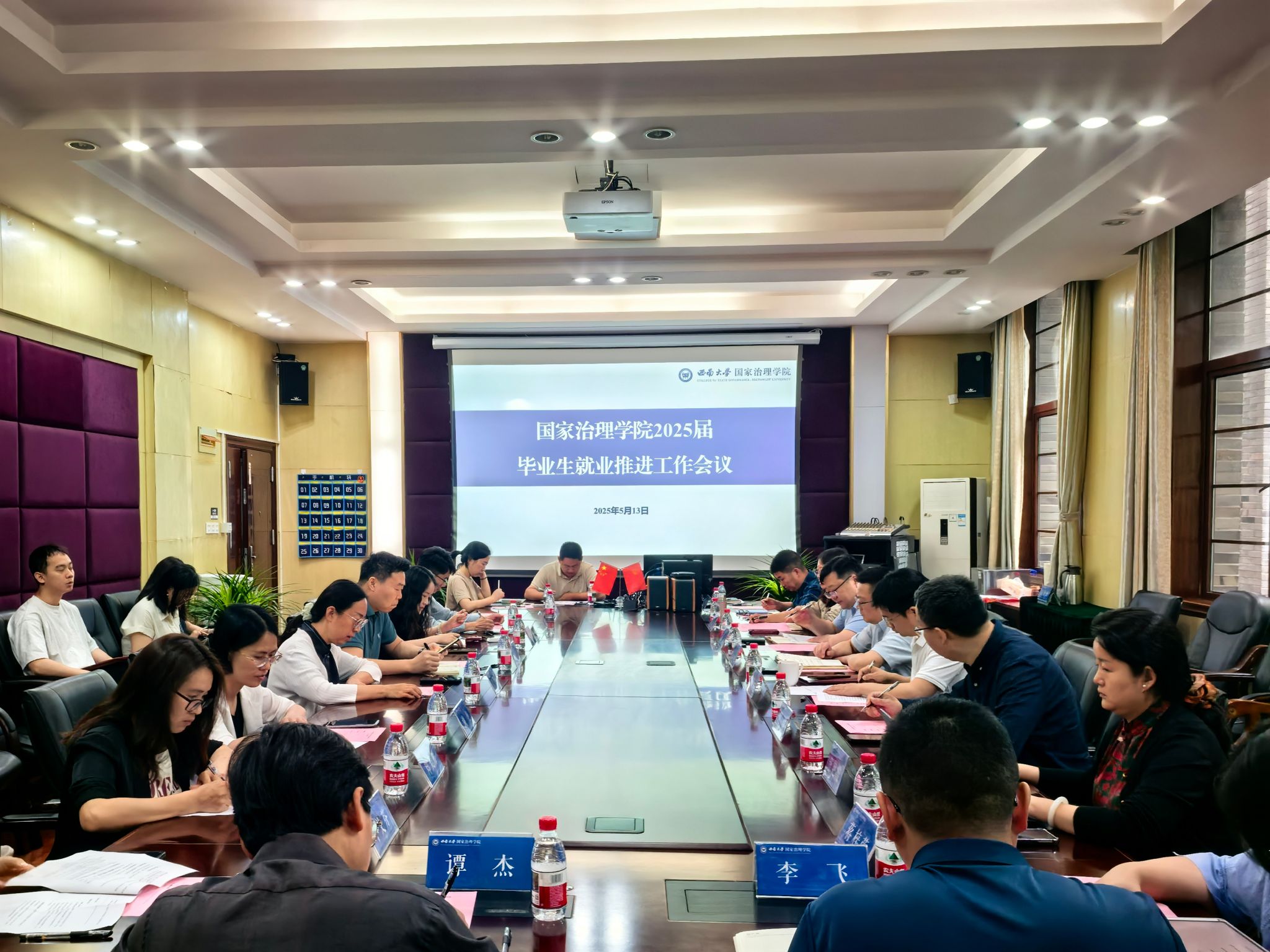 本科生辅导员杨钦清及研究生辅导员汪全洲分别汇报了2025届毕业生就业工作数据与进展。
