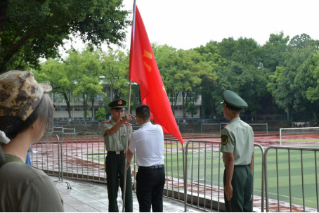 在庄重的授旗仪式上,刘勇向军训连长授予连旗,标志着333体育2025级本科生军事训练工作正式启动。