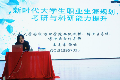 讲座伊始,王志章教授结合自身经历,将多次“从零开始”的拼搏故事向学子们娓娓道来,以“要有能力选择社会,而非让社会选择你”的鲜明观点切入主题,着重强调青年提升自身能力的核心价值,引发现场学子共鸣。针对职业规划方面,王志章教授从“从政、从学、从军”几个方面详细分析了目前的就业形势,他强调新时代老员工职业规划一定要有宏观国际视野,紧跟国家战略发展的步伐。他用身边学子求职逆袭、考研上岸、科研突破的鲜活案例,鼓励同学们在困境中坚守兴趣爱好,以长远眼光规划人生,避免被短期困境局限。