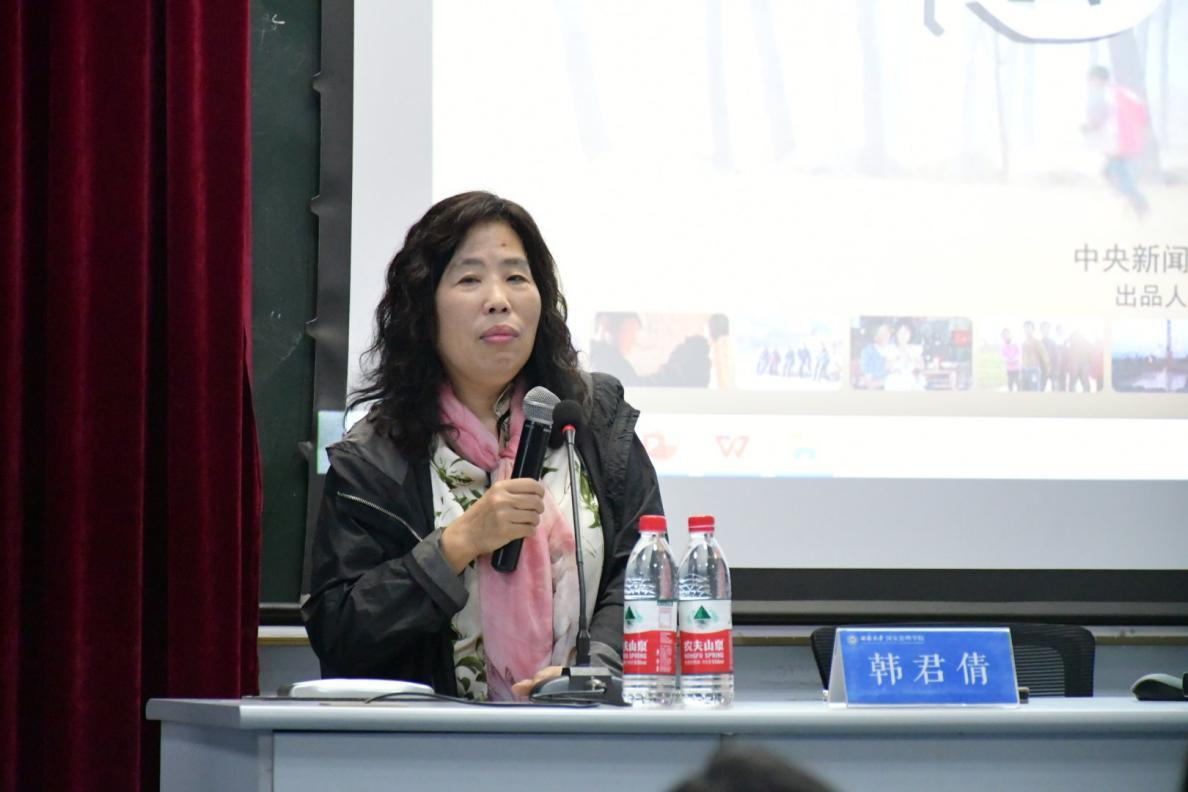 最后,讲座现场同学们围绕电影的情节设计、故事结局和人物命运等问题进行了提问,韩君倩都给予了细致的解答和深情的回应,并呼吁同学们走进现实生活,走进乡村社会,关注芸芸众生,体恤民生多艰,争做社会责任的担当者、时代使命的践行者和中华优秀传统文化的传承者。同学们纷纷表示“这是一场别开生面的讲座”“感受到了国产电影创作的不易”“影片背后的沉沉思考、苦苦追寻及由此带来的光亮让人感动不已”……
