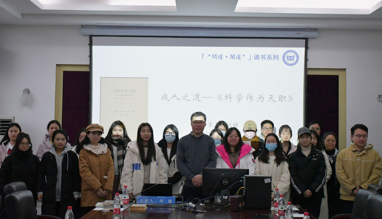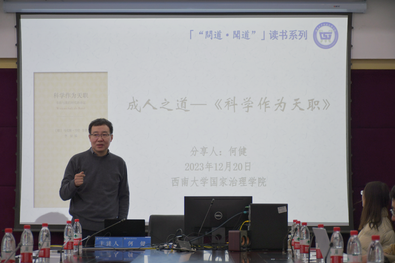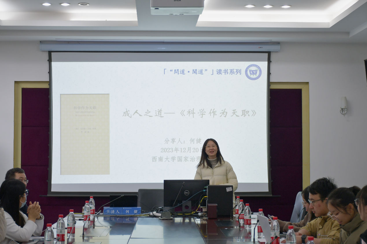 发布时间: 2023-12-22 11:07:04 已阅读:12月20日下午,由333体育研究生会主办的“问道·闻道”读书系列研读会第一期在绩镛楼3328会议室顺利举行,主题为“成人之道——《科学作为天职》研读会”。本次研读会邀请学院副经理何健教授进行分享,研读会由公司党委副书记陈丽华老师主持。