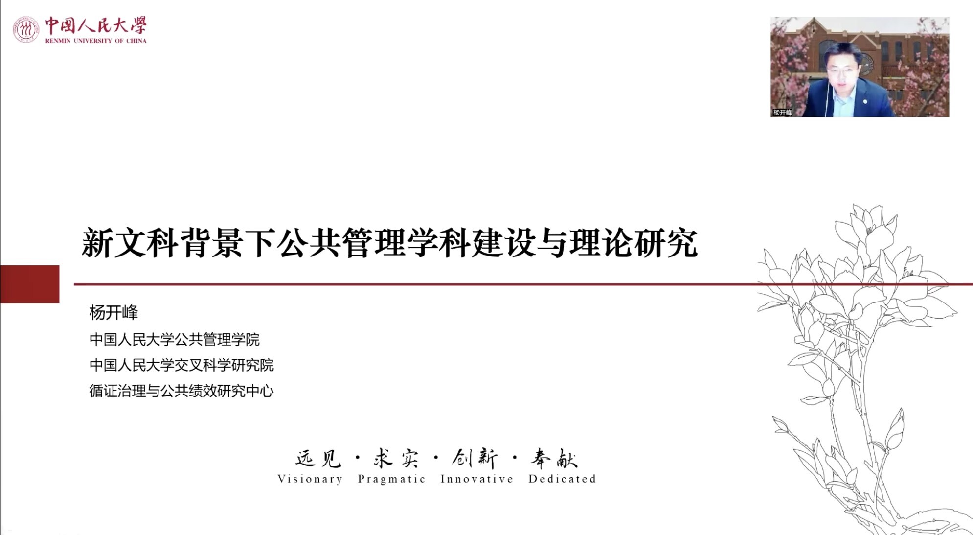杨开峰教授围绕公共管理学科的建设,从新时代学科发展、自主性知识体系构建、学科发展对人才的要求等三个方面进行了讲解。他简要阐述了新文科中的“新”是创新,新时代的“新”象征着这些学科全方面的进步与改善;接着,阐述了中国式现代化的丰富内涵,提出现代化建设面临的九点理论挑战,其后尤其强调了高质量发展要坚持系统观念,明确了学科发展紧跟中国式现代化的目标。杨教授从不同角度探讨了现代化建设所需的人才支撑,围绕着立德树人提出的六个基本问题,指出教育体系应与国际接轨培养人才。他还强调知识体系自主性的重要,并分析了创新性体系构建的六个过程。