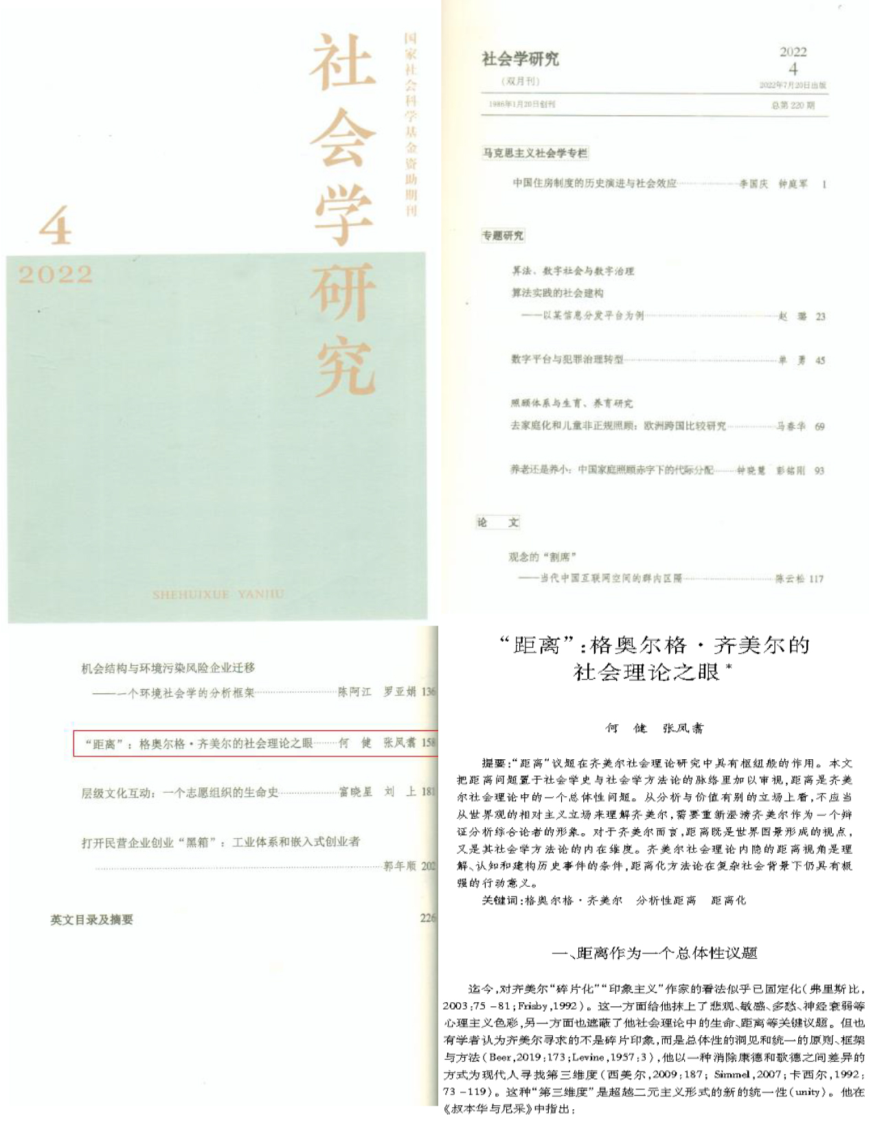 发布时间: 2022-09-29 17:38:05 已阅读:近日,333体育何健老师、硕士研究生张凤翥合作的《“距离”:格奥尔格·齐美尔的社会理论之眼》一文在《社会学研究》2022年第4期发表。该文认为:“距离”议题在齐美尔社会理论研究中具有枢纽般的作用。把距离问题置于社会学史与社会学方法论的脉络里加以审视,距离是齐美尔社会理论中的一个总体性问题。从分析与价值有别的立场上看,不应当从世界观的相对主义立场来理解齐美尔,需要重新澄清齐美尔作为一个辩证分析综合论者的形象。对于齐美尔而言,距离既是世界图景形成的视点,又是其社会学方法论的内在维度。齐美尔社会理论内隐的距离视角是理解、认知和建构历史事件的条件,距离化方法论在复杂社会背景下仍具有极强的行动意义。