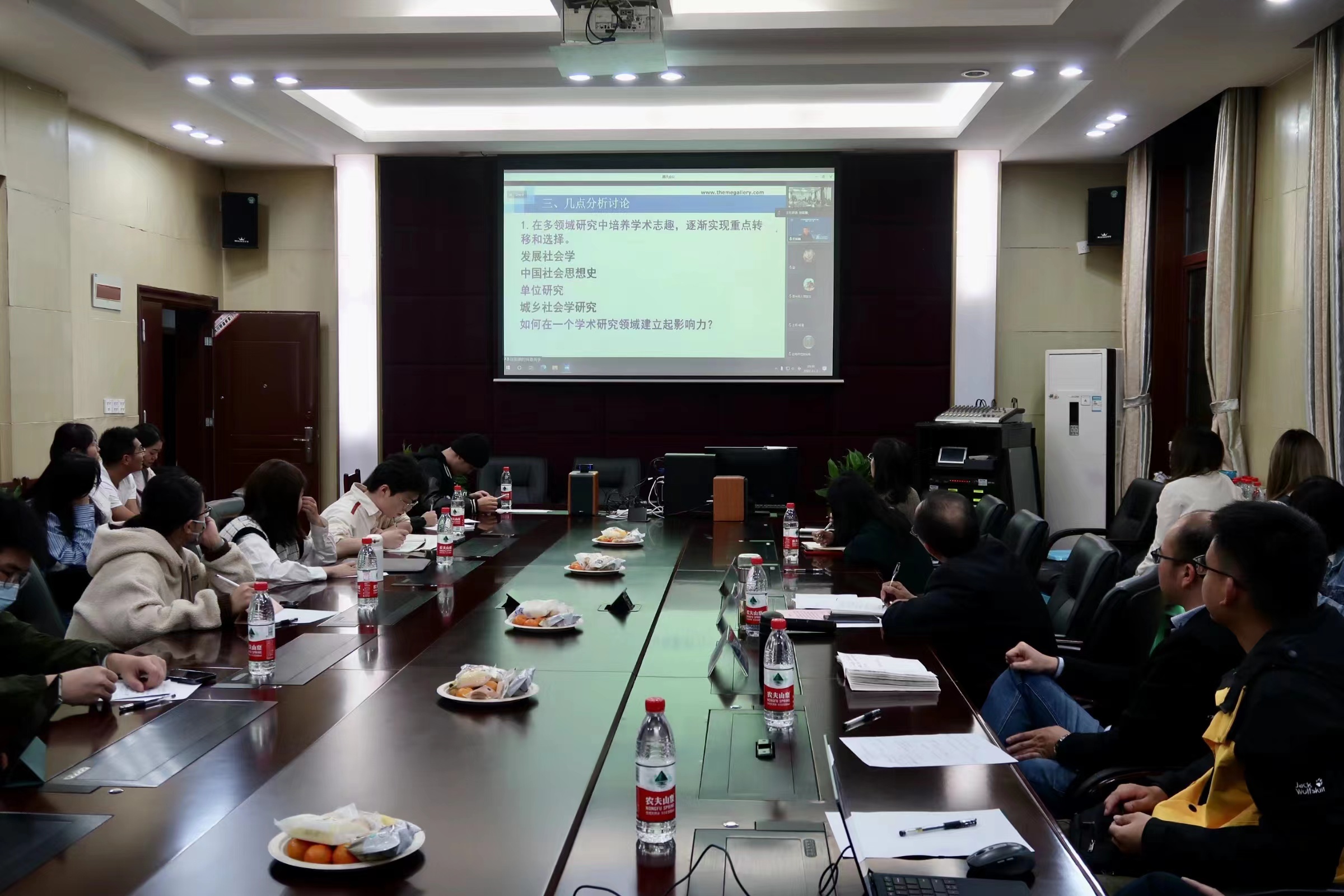 2022年11月3日晚,“新文科”助力中国式现代化系列学术报告第一讲在绩镛楼3201会议室如期举行。吉林大学哲学社会学院经理田毅鹏教授在线作了题为《学术研究的领域选择与转换》的报告。本场学术报告由学院经理潘孝富主持,党委书记吴江致欢迎辞,副经理何健、新文科建设办公室主任兰剑及其他师生40余人在在线下参加,近200余人通过腾讯会议线上聆听。