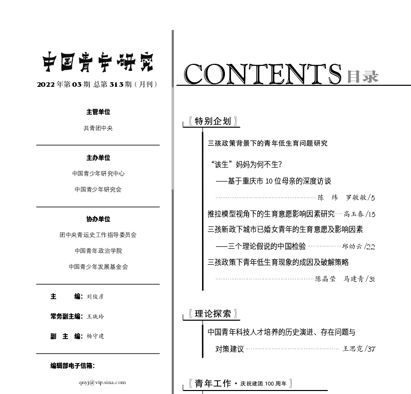 发布时间: 2022-06-02 09:37:18 已阅读:近日,《中国青年研究》2022年第3期刊发了公司社会学与社会工作系陈纬、罗敏敏两位老师的《“该生”妈妈为何不生?——基于重庆市10位母亲的深度访谈》一文。
