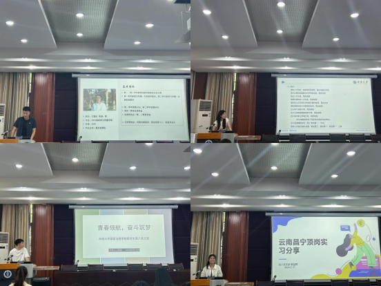 为进一步促进支部党员间联学共建、互学互促,强化党员同志立足专业发挥青春作用,本次党日活动举办成长论坛。研究生第八党支部陈键同志以《青春领航,奋斗筑梦》做主题分享,从备考计划、心态调整、课程复习等方面向大家分享考公上岸的学习经验与心得。研究生第八党支部蔡益辉以《助力乡村振兴,贡献青春力量》做主题分享,结合云南昌宁顶岗服务实习经历与体会,生动讲述了在云南昌宁巩固拓展脱贫攻坚成果、努力推进乡村振兴的实践故事。新闻与传播(专硕)第一党支部李远婕同志以毕业备考经历为切入点,分享面对枯燥的复习时光和屡次面试经历中调整情绪的方法。新闻与传播(专硕)第一党支部江骁达同志以《关关难过关关过、前路漫漫亦灿灿》做主题分享,从发展目标、员工工作、职业规划和考公经验四部曲分享研究生学习生活经历。党员同志们认真聆听、积极交流互动,现场一片浓厚和谐的学习氛围。