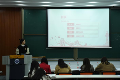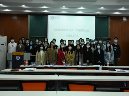 在全体起立奏响团歌后,风采展示大赛正式开始。22位本科团支部书记先后上台进行PPT展示,分别从思想引领、组织建设、学风建设、团学活动、成果展示等不同方面介绍团支部情况。青年大学习的优秀完成率、丰富的团支部特色活动、优异的竞赛成绩让人耳目一新。展示环节内容丰富、特色明显,不仅呈现出各个团支部良好的凝聚力,也表现出国治学子的青年担当、青年责任、青年力量。
