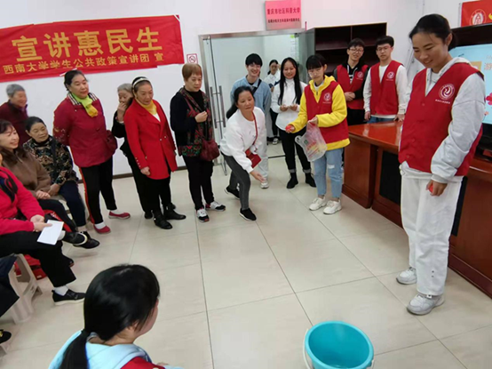 宣讲员卢昕与刘思雨向爷爷奶奶们讲述真实案例