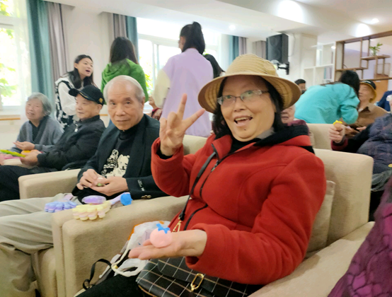 紧接着,便是轻松的游戏环节,第一个小游戏的名字叫做“万柿如意”,爷爷奶奶们用他们的巧手捏出了一个又一个惟妙惟肖的黏土小柿子。在第二个小游戏“听歌识曲”中,公宣团成员汪柳欣播放了十五首音乐片段,许多歌曲刚播放不久便有人举手说出歌名,现场的气氛被欢快的歌曲瞬间点燃。到了最后一个小游戏“唱响金秋”,主持人将话筒交到爷爷奶奶们手中,由他们自由歌唱,嘹亮的歌声贯响礼堂。