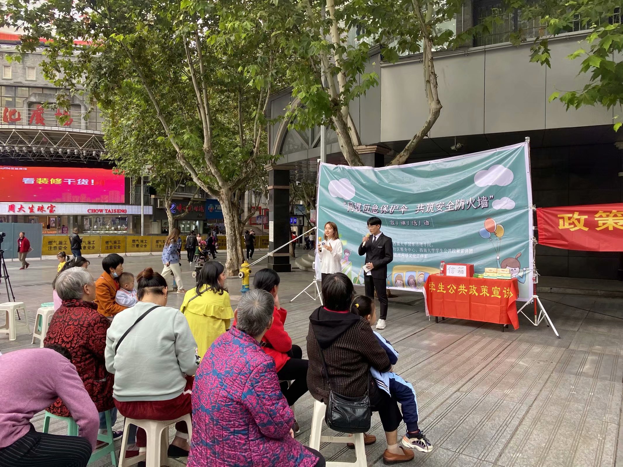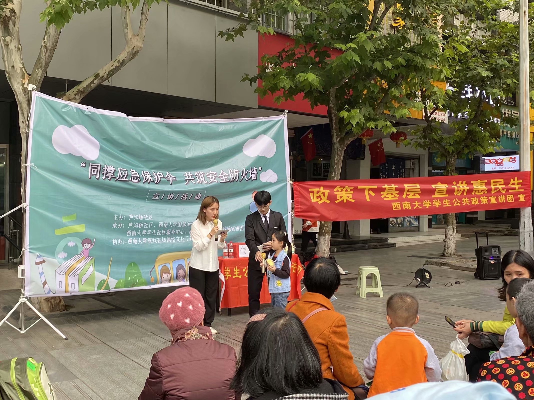发布时间: 2020-11-04 08:23:45 已阅读:“凛冬散尽,星河长明。”随着国内疫情形势的逐渐好转,我们的生活也逐渐步入正轨,为了宣传我国在疫情期间应急管理工作上所取得的成就和经验,提高大众对于我国应急管理体系的理解,333体育官网员工公共政策宣讲团(以下简称“公宣团”)联合芦沟桥社区于2020年10月23日15:30在芦沟桥社区举办“同撑应急保护伞,共筑安全防火墙”主题宣讲活动。在和煦的秋日暖阳下,雷晓妍和向昶两位主持人为我们详细介绍了本次活动的背景,激情澎湃的语言吸引了许多热心市民围观。