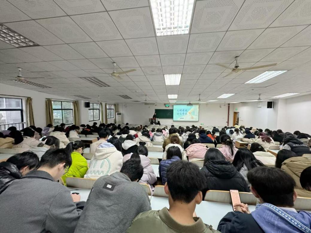 辅导员肖颜老师结合真实案例,详细解读了学校关于作弊等考试违纪行为的规章制度,强调了学院在推进诚信考试方面的决心和措施。并指出,学院将通过加强考试管理、完善监督机制、开展诚信教育等多种方式,努力营造风清气正的考试环境,号召同学们相互监督、共同进步,形成积极向上的学习氛围。