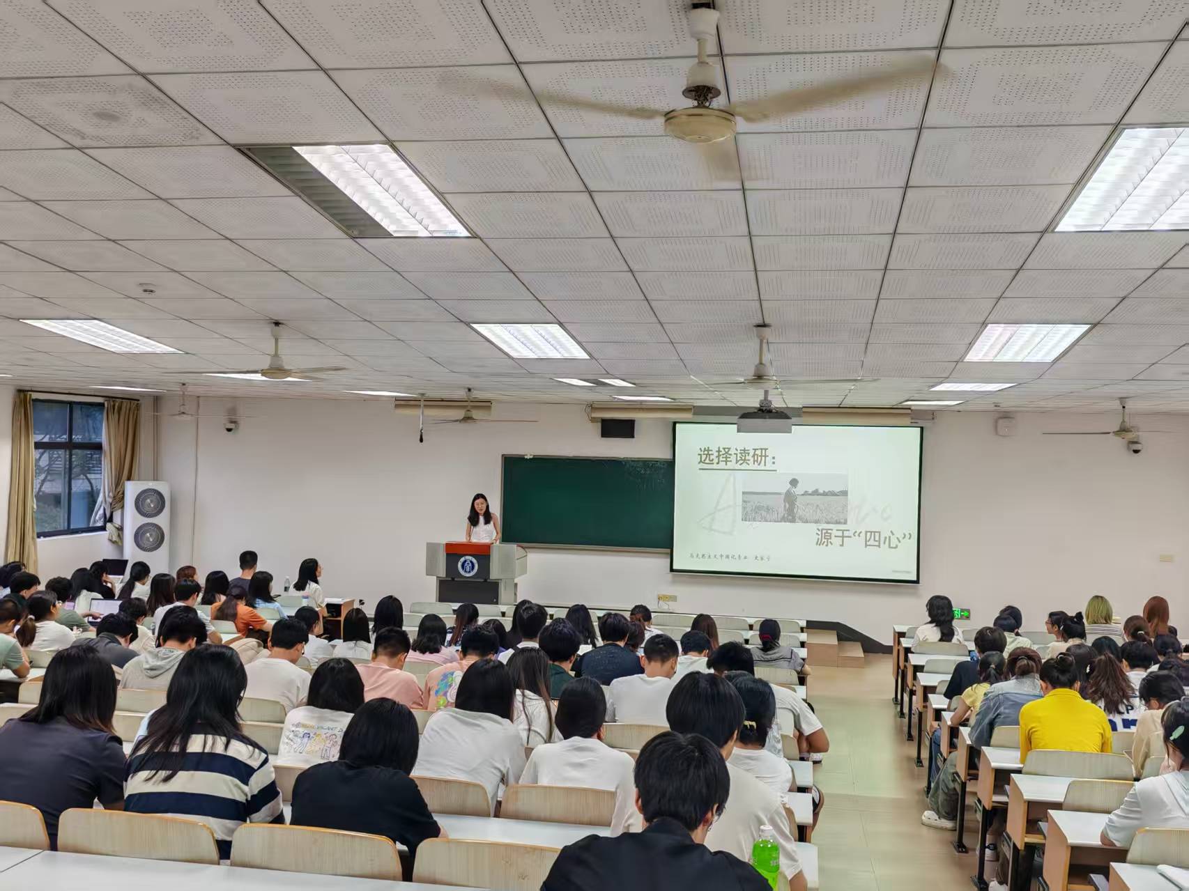 为助力员工明确未来发展方向,进一步夯实学风建设,助力员工成长成才,5月26日19:30,学院在10教501举办以“人生的十字路口:读研是选择,更是成长”为主题的优秀学子读研经验分享会。会议由辅导员史丽主持,2023级全体员工参加。